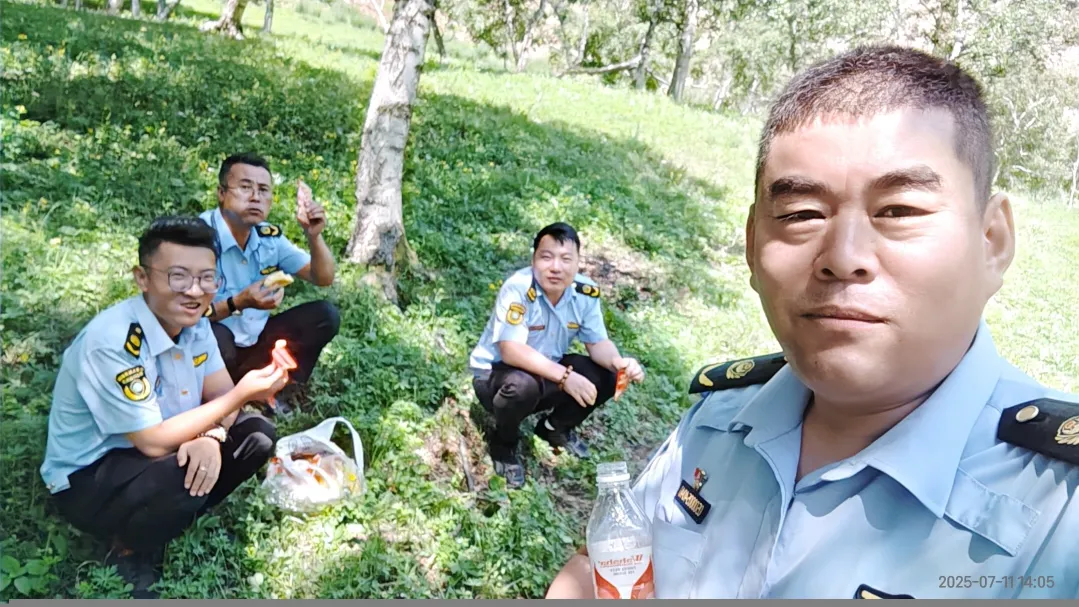 执法队员野外简餐过后继续执法巡查(右一 苏蒙)