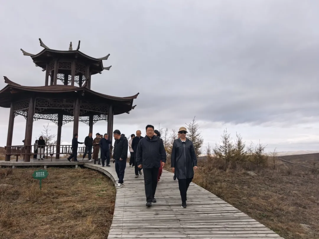 调研组首先参观了大青山保护区自然教育研学基地。讲解员围绕基地的生态教育功能、保护区近年来生态修复成果、珍稀动植物保护技术等内容作了详细介绍。铁检分院一行认真聆听,并就“行政执法与司法衔接”“研学教育对生态保护的推动作用”等问题展开交流,深入了解保护区在生态保护实践中的先进理念与具体方法。随后,调研组前往黄花窝铺、敕勒川高山草原等地开展实地调研,沿着生态步道近距离了解草原植被恢复、水土保持、生物多样性保护等情况,并围绕“如何提前防范资源破坏、非法放牧等生态风险”“怎样通过司法手段高效推进行刑衔接”等核心话题展开深度交流,现场碰撞出许多协作思路。