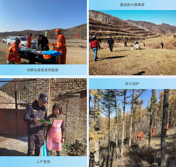 本次活动采取“宣传教育与实地巡护相结合、定点宣传与流动巡查相补充”的方式,重点开展了五项具体工作:一是在防火检查站向过往游客和群众发放《森林防火宣传手册》《野生动物保护法》等宣传资料,工作人员以通俗易懂的语言讲解防火法律法规和日常防火注意事项,特别提醒群众严禁野外违规用火。二是在管护点办公区、东风行政村主干道、入山路口等关键位置,书写醒目的宣传标语,增强宣传覆盖面和群众参与度。三是走进农家院落,向群众发放印有防火标语的围裙、抽纸等实用宣传品160余份,让防火理念以更加贴近生活的方式深入人心。四是组织巡护队员深入林区开展防火检查和巡山巡林工作,排查林间草地火源火种、清理易燃垃圾,并全程启用“智绘巡护”系统,确保巡护工作无死角、可追溯。五是组织半专业扑火队在山脚下使用割草机清理出20余米的防火隔离带,切实提升了队伍的实战能力和责任意识,为维护保护区森林草原防火安全形势持续稳定提供了有力保障。