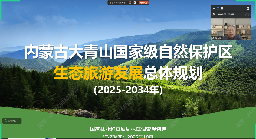 历经多轮实地调研、座谈交流与修改完善,《内蒙古大青山国家级自然保护区生态旅游发展总体规划》(以下简称《规划》)迎来关键评审环节。10月31日,《规划》线上评审会顺利召开。会议由内蒙古自治区大青山国家级自然保护区管理局副局长王建和主持,5位业内权威专家以线上方式参与,共同为规划“问诊把脉”。
