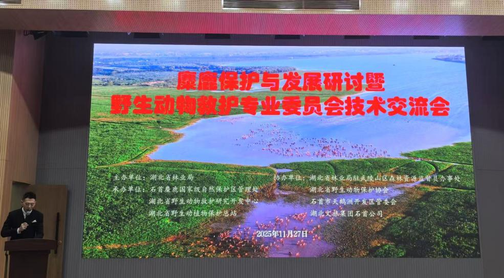 11月27日,内蒙古大青山国家级自然保护区受邀赴湖北石首麋鹿国家级自然保护区,参加“麋鹿保护与发展研讨暨野生动物救护专业委员会技术交流会”。本次活动由湖北省林业局主办,石首麋鹿国家级自然保护区管理处等单位承办。内蒙古自治区大青山国家级自然保护区管理局科研监测处处长张俊华、呼和浩特分局副局长刘佳文代表保护区参加此次活动。