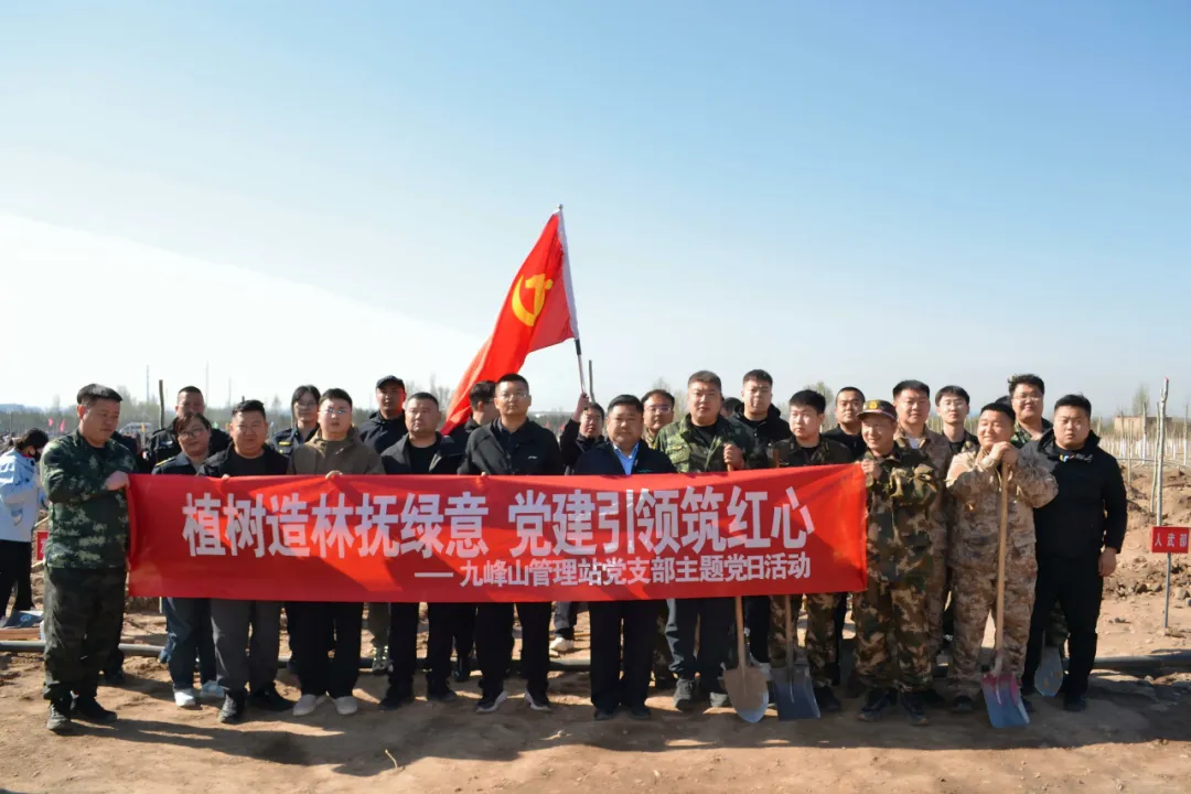 为深入贯彻习近平生态文明思想,践行绿色发展理念,4月10日,九峰山管理站党支部积极响应土右旗春季义务植树活动,组织开展了“植树造林抚绿意 党建引领筑红心”主题党日活动,以实际行动助力北疆“万里绿色长城”。