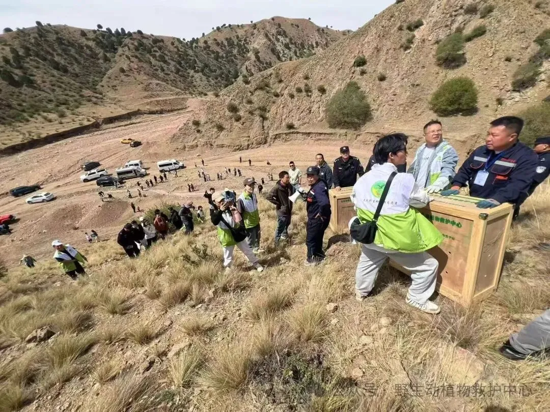 随后,各单位赴阿善沟进行痊愈野生动物放归自然活动。本次放归涵盖秃鹫、草原雕、红隼、沙狐等野生动物,这些动物均为近期救助的受伤、迷途个体,经专业救治和野化训练后,已具备野外生存能力。